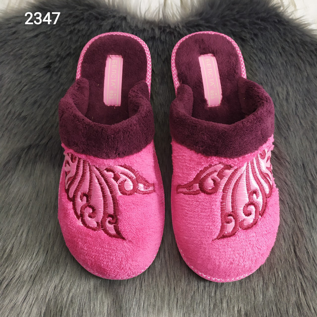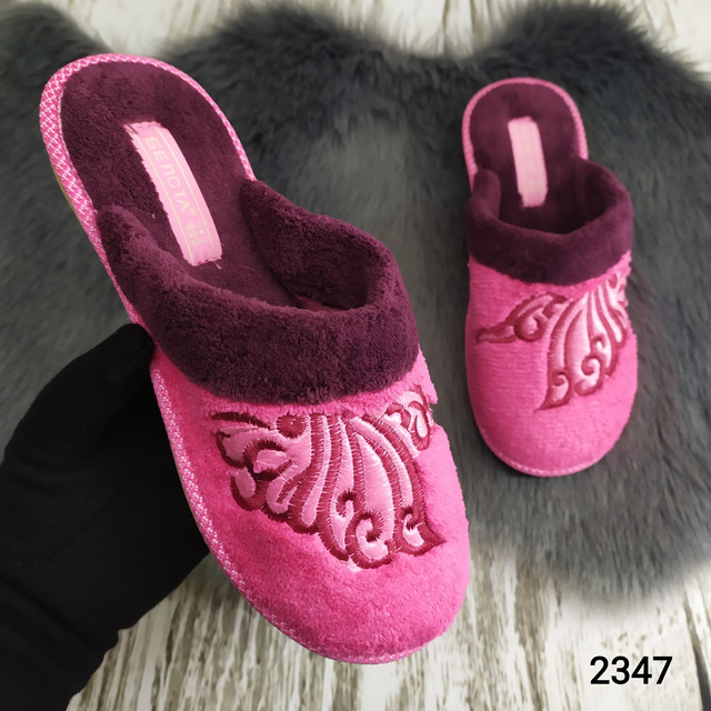 Жіночі кімнатні капці Белста. Із закритим носком, рожевого (малинового) кольору з вишивкою. Підошва поліуретанова — не стирається, не ламається, не тріскається, не просідає. Махрові теплі домашні капці. Домашнє взуття високої преміум'якості! З мінімальним доглядом слугуватимуть не один рік!