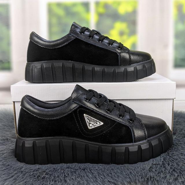 Кросівки жіночі шкіряні чорні на об'ємній підошві KDSL 4219