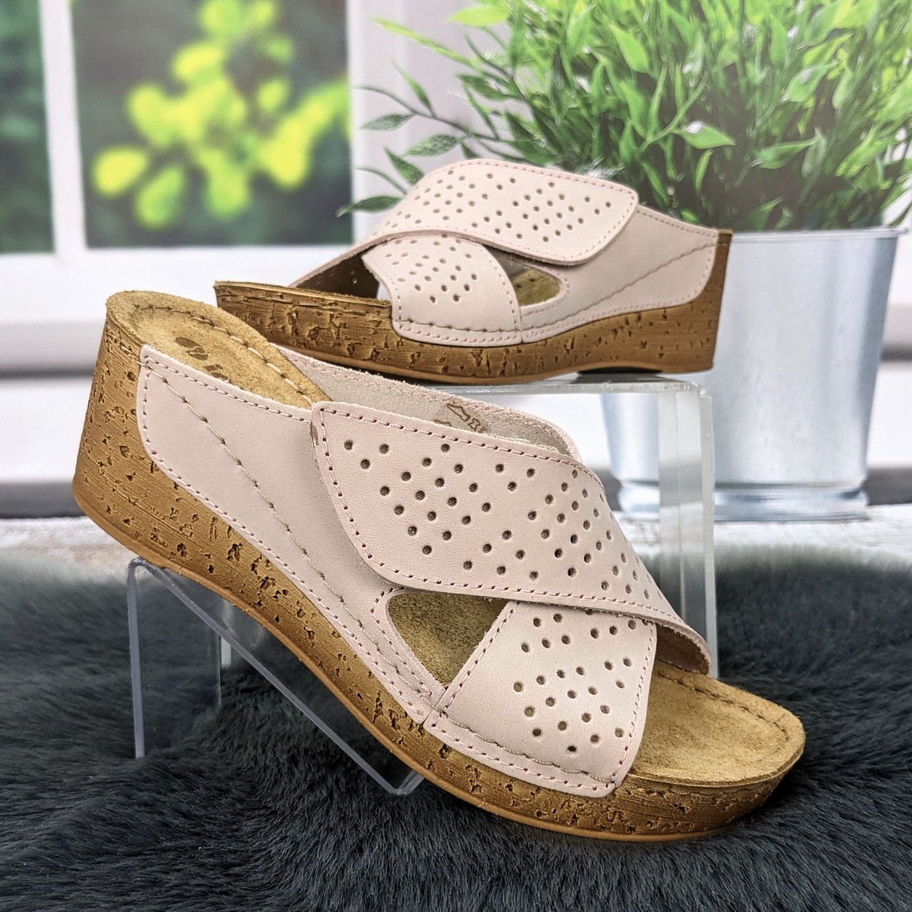 Жіночі шкіряні шльопанці на платформі на липучках