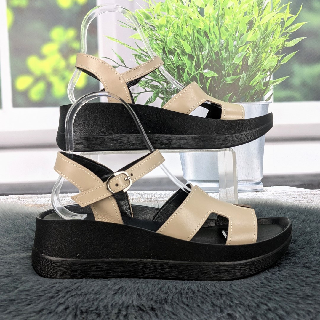 Босоніжки жіночі шкіряні на платформі середньої висоти
